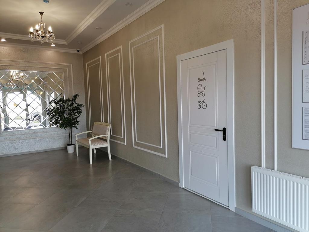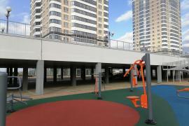Дизайнерская входная группа, три скоростных лифта, есть консьерж и колясочная зона. Стилобат, с парковкой и большой детской площадкой на которой расположено футбольное и баскетбольное поле, спортивная зона и уютные беседки с мангалом.