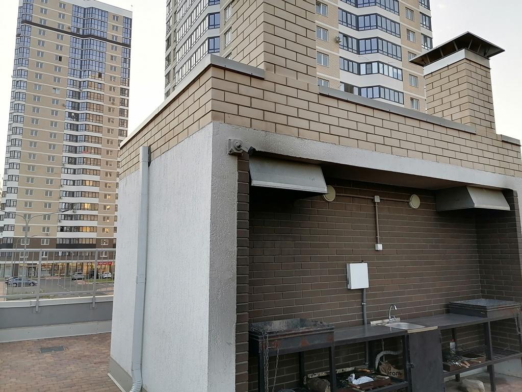 Дизайнерская входная группа, три скоростных лифта, есть консьерж и колясочная зона. Стилобат, с парковкой и большой детской площадкой на которой - футбольное и баскетбольное поле, спортивная зона и уютные беседки с мангалом.