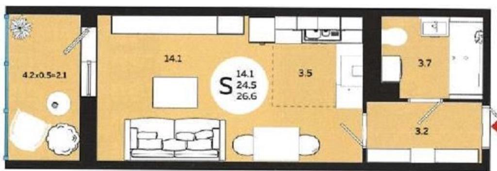 Продается Студия новостройка, 26 кв.м., 19/24 эт