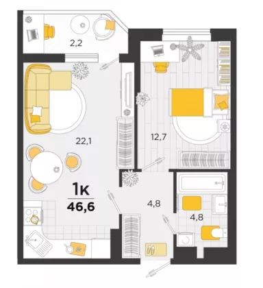 Продается однокомнатная новостройка, 46.6 кв.м., 9/23 эт