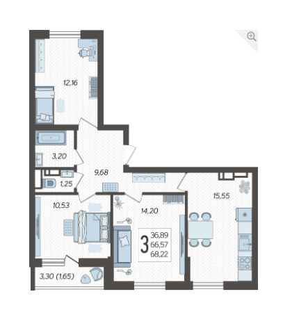 Продается 3-х комн. новостройка, 68 кв.м., 10/16 эт