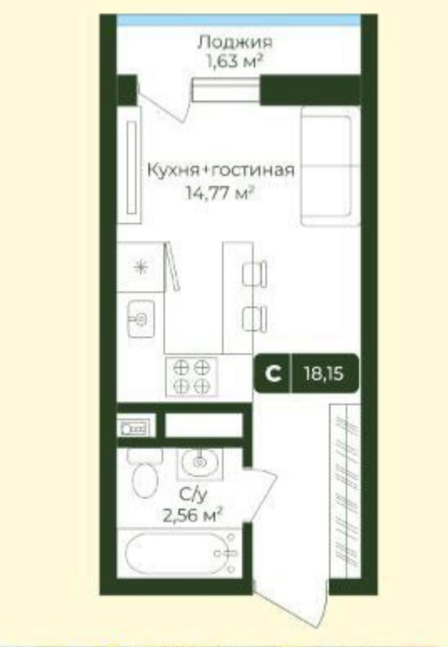 Продается Студия новостройка, 20 кв.м., 4/10 эт