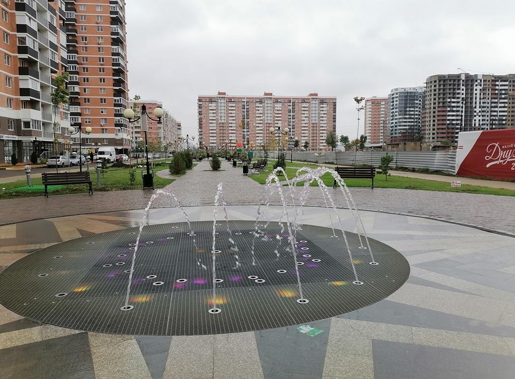 Место для отдыха и прогулок- парк  с цветным фонтаном, с скамейками и велодорожками!!!