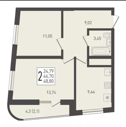 Продается 2-х комн. новостройка, 48 кв.м., 3/24 эт