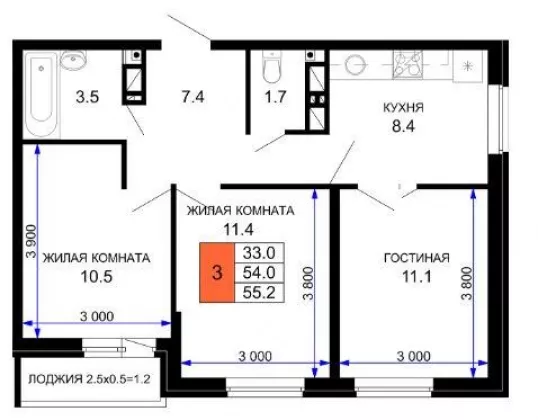 Продается 3-х комн. новостройка, 56 кв.м., 12/16 эт
