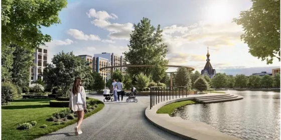 Площадь жилого комплекса 186га, на территории две школы, два детских сада, современный парк 6,69гас зонами отдыха для взрослых и детей, ландшафтный дизайн, свой аква- парк и торговый центр, поликлиника, храм, центр добрососедства, на первом этаже коммерческие помещения, что позволит жильцам не выходя из комплекса совершать покупки.