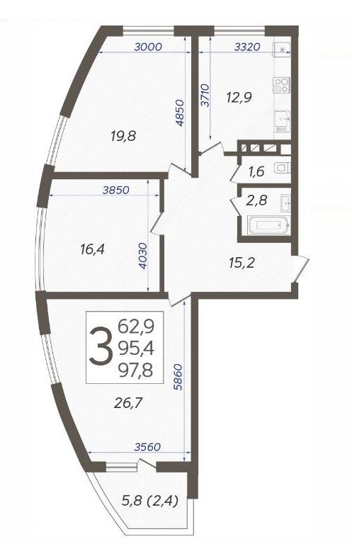 | Площадь, кв.м. | 97.8 |