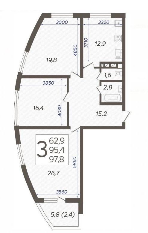 Продается 3-х комн. новостройка, 97.8 кв.м., 10/24 эт