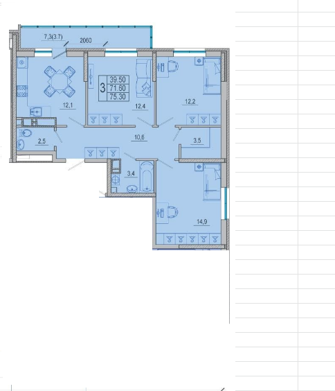 | Площадь кухни, кв.м. | 12.1 |