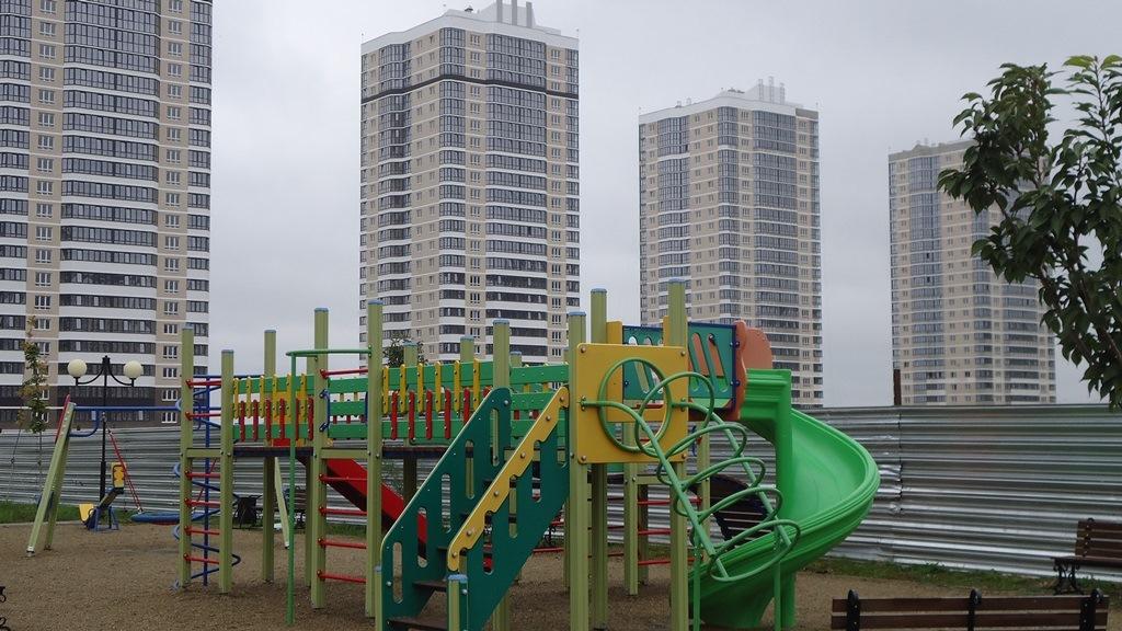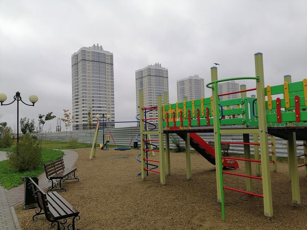 Здесь хочется жить, кругом зелень, чистота и порядок. На первом этаже коммерция, а значит что всё необходимое у вас дома, на районе уже развита вся инфраструктура Комплекс отличается от других своим архитектурным обликом, мы видим четыре свечки которые соединятся между собой одним двором, во дворе двухуровневые стилобаты – первый уровень это парковка для авто, второй это футбольное, волейбольное поле, детские площадки и удобные беседки.