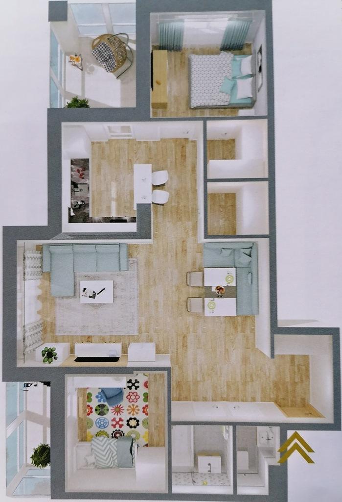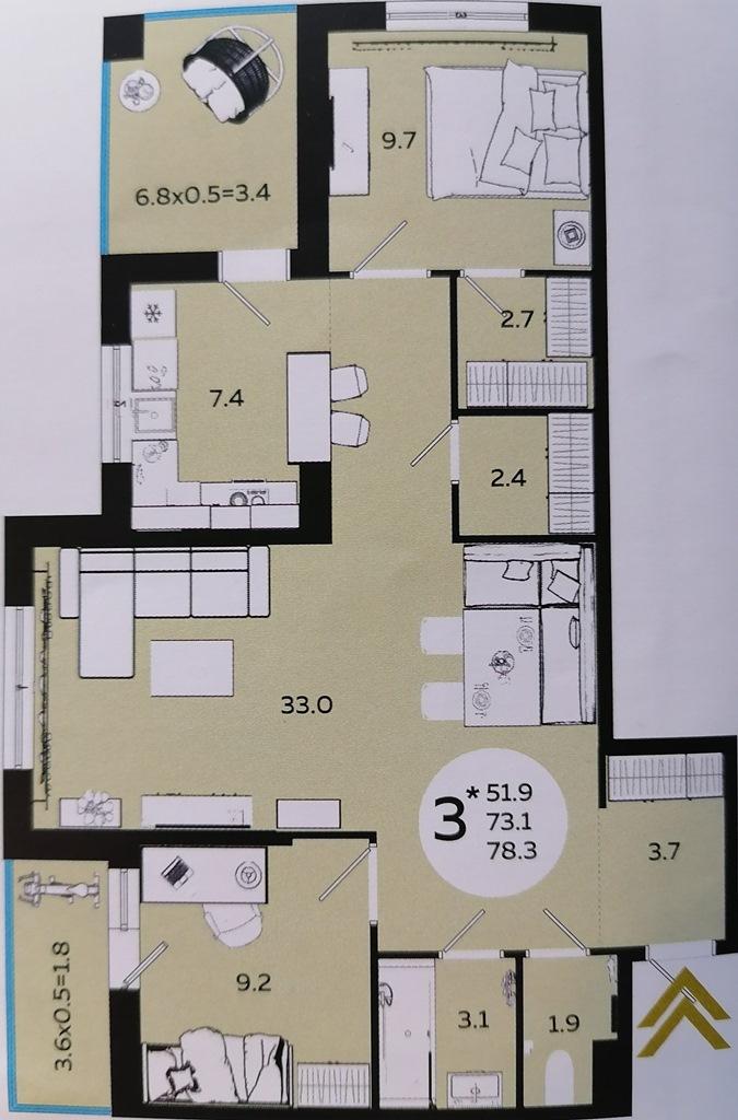 Квартира с большой кухней, с комнатами правильной формы, раздельным санузлом, большой лоджией с витражным остеклением и широким коридором.
