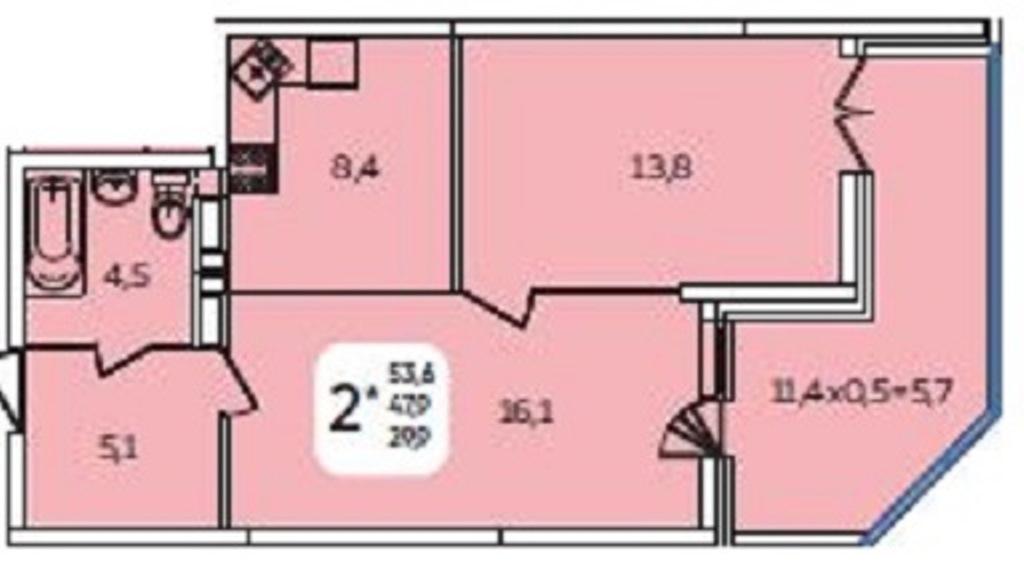 Продается 2-х комн. новостройка, 53.6 кв.м., 4/17 эт