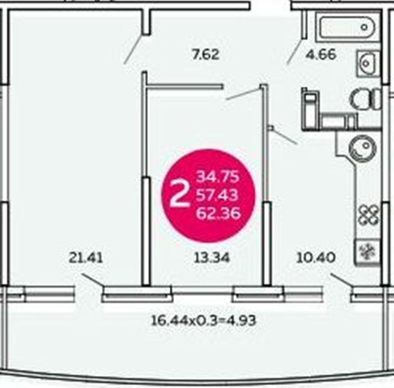 Продается 2-х комн. новостройка, 62 кв.м., 6/17 эт