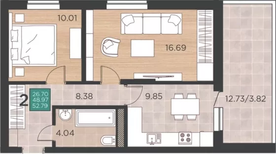 Продается 2-х комн. новостройка, 53 кв.м., 12/17 эт