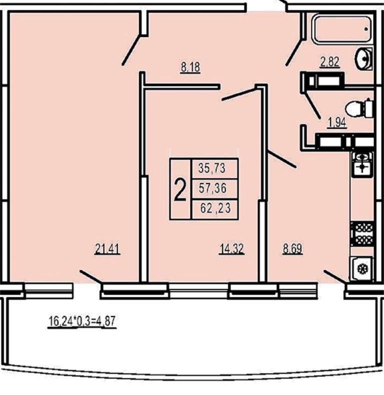 Продается 2-х комн. новостройка, 62 кв.м., 5/17 эт
