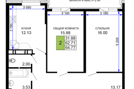 Продается 2-х комн. новостройка, 65 кв.м., 7/15 эт