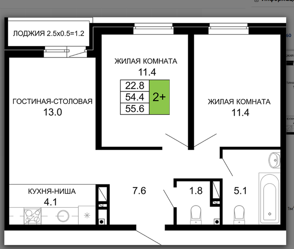 | Площадь, кв.м. | 55 |