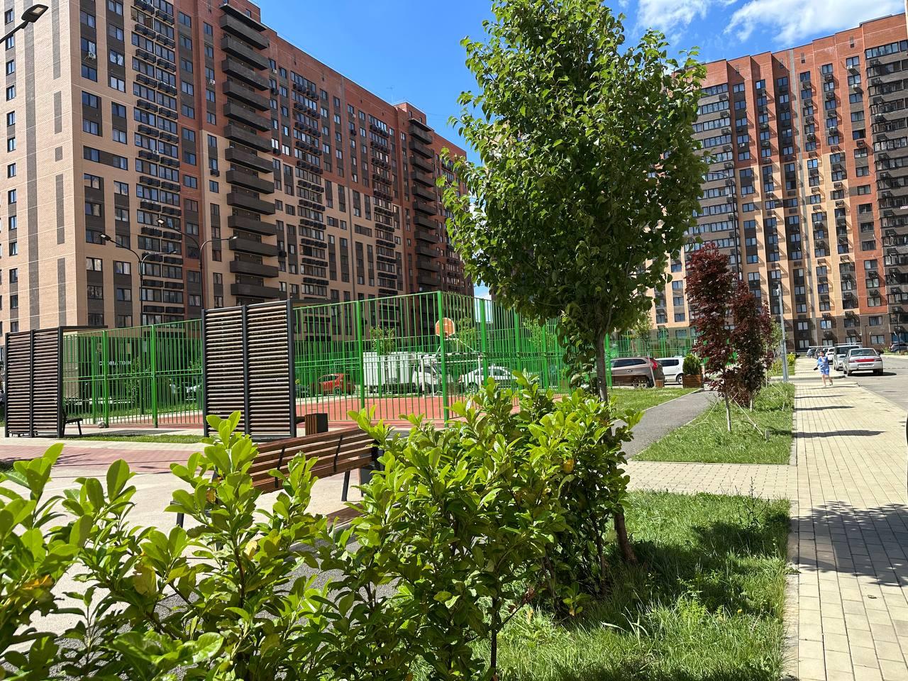 Во дворе детские и спортивные площадки, зоны отдыха с арт- объектами, зона паркинга. Рядом с домом школа и детский сад, развивающие комнаты. Торговые центры, гипермаркеты Магнит, Пятерочка, торгово-развлекательный центр ОЗ Молл. Удобный выезд к Черному морю, аэропорту.