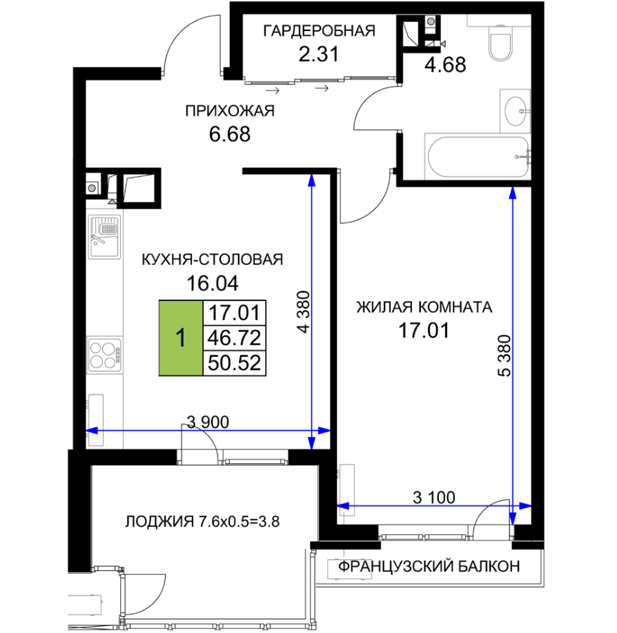 | Площадь, кв.м. | 50.52 |