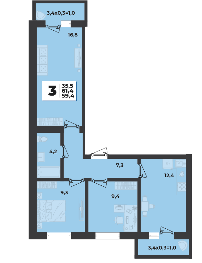 Продается 3-х комн. новостройка, 61.4 кв.м., 5/5 эт