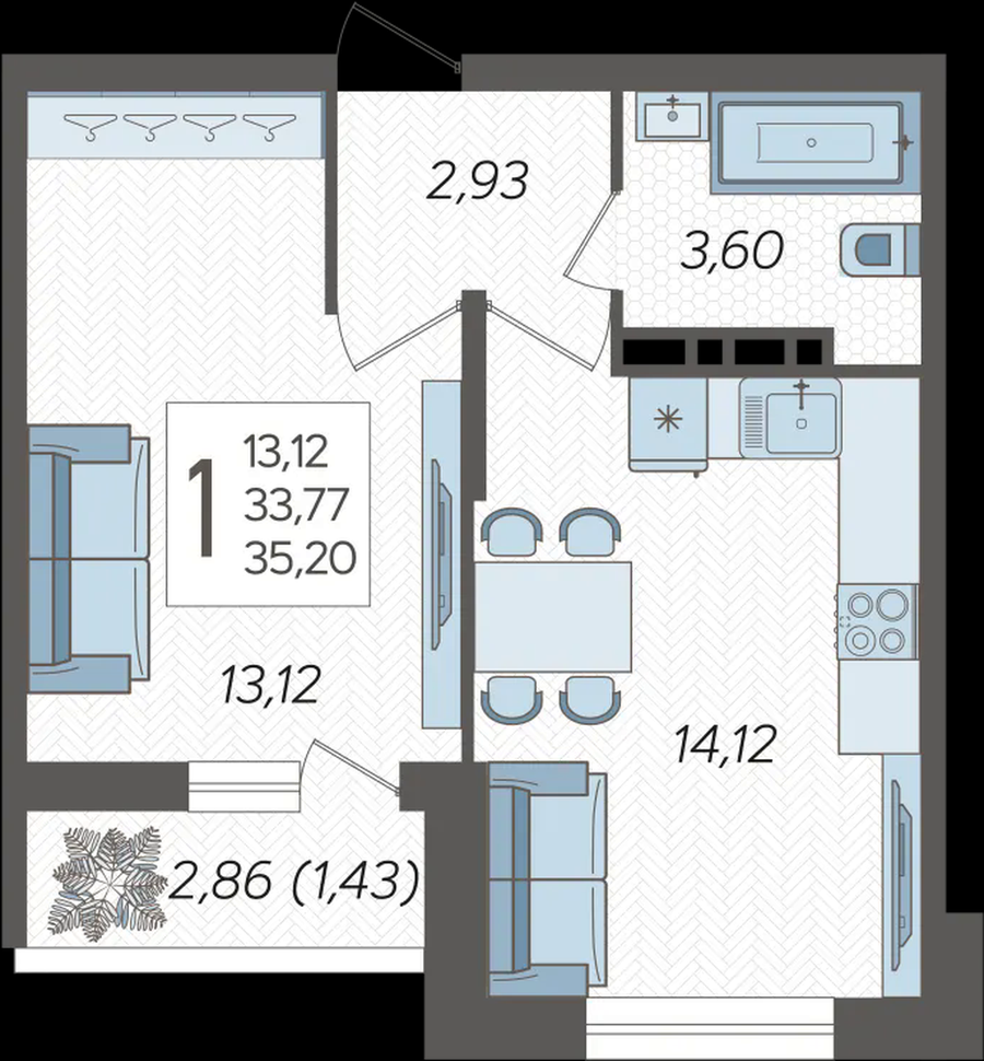 Продается однокомнатная новостройка, 36 кв.м., 7/16 эт