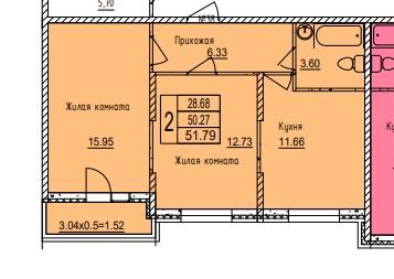 Продается 2-х комн. новостройка, 51 кв.м., 7/16 эт