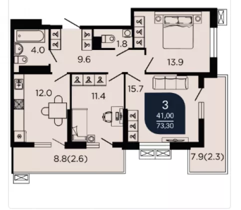 Продается 3-х комн. новостройка, 73.3 кв.м., 3/18 эт