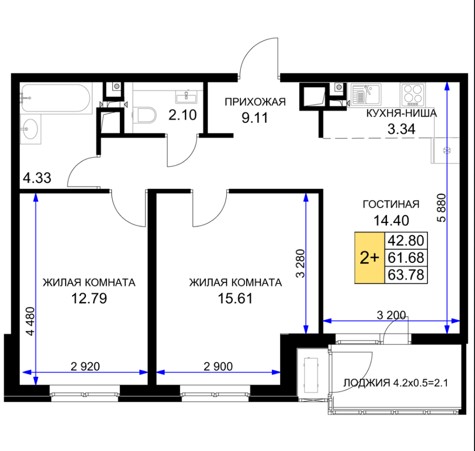 Продается 2-х комн. новостройка, 63.78 кв.м., 10/16 эт