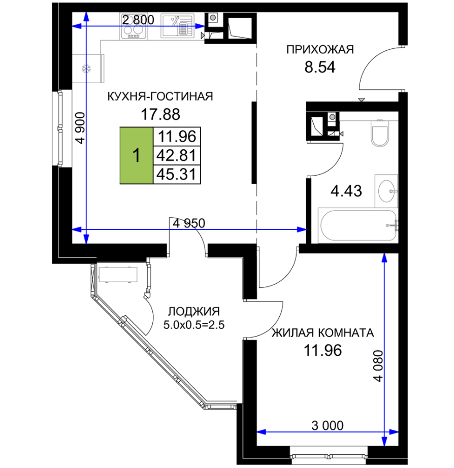 | Площадь кухни, кв.м. | 17.88 |