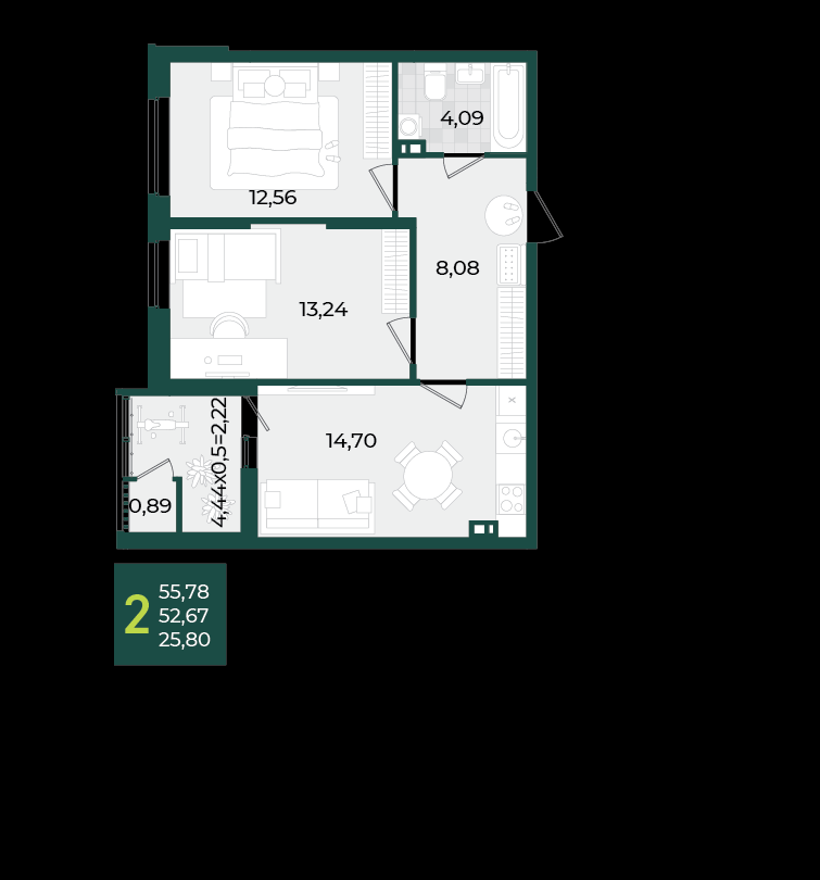 | Площадь, кв.м. | 55.64 |