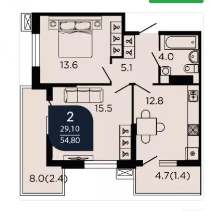Продается 2-х комн. новостройка, 54.8 кв.м., 4/23 эт