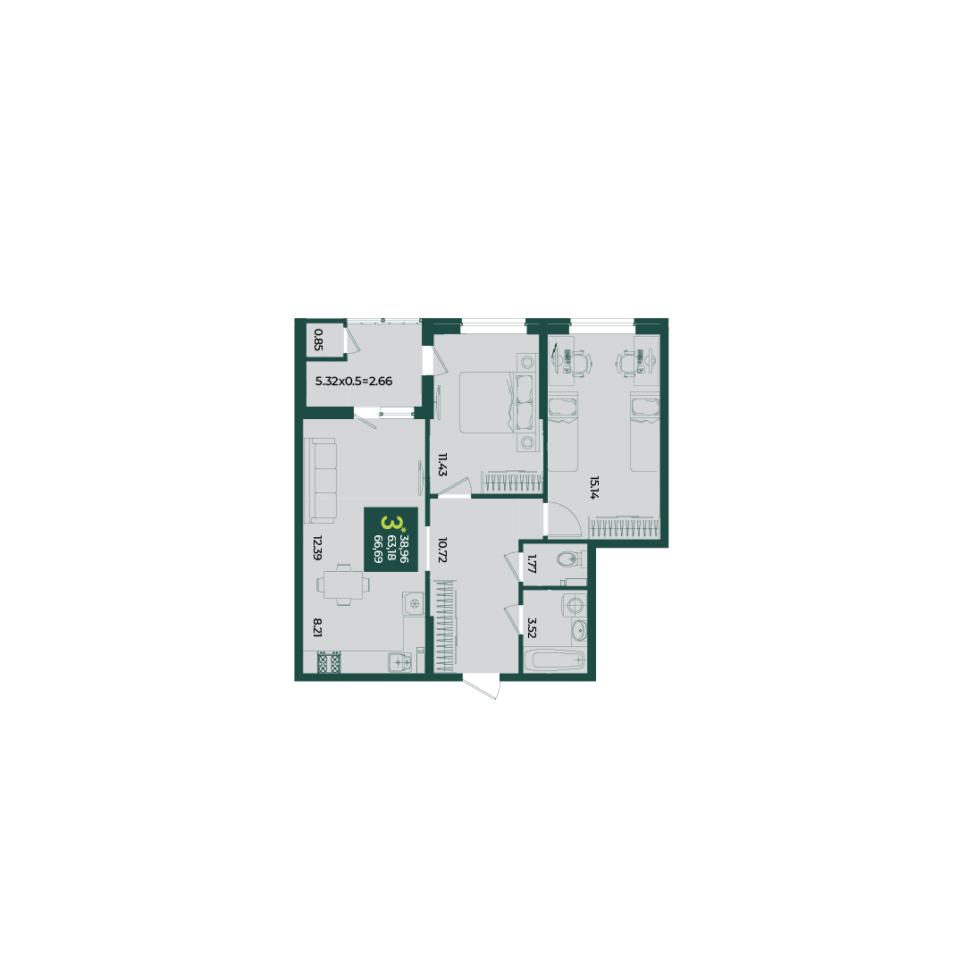Продается 3-х комн. новостройка, 66.7 кв.м., 10/18 эт