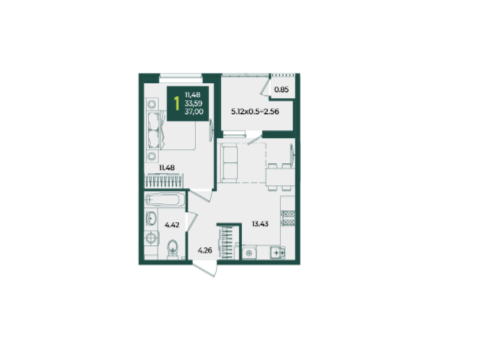 | Площадь, кв.м. | 37 |