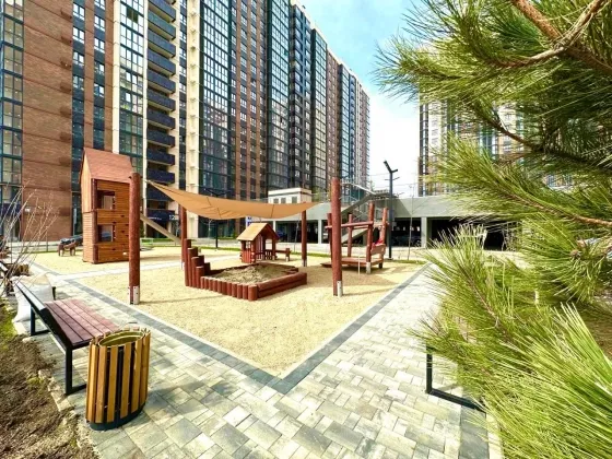 Во дворе детские и спортивные площадки, зоны отдыха с арт- объектами, зона паркинга. Рядом с домом школа и детский сады, поликлиника. Торговые центры, гипермаркеты Магнит, Пятерочка, торгово-развлекательный центр Красная площадь. Удобный выезд к Черному морю, аэропорту. Общественный транспорт, маршрутное такси, трамвай.