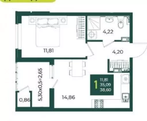 Продается однокомнатная новостройка, 39 кв.м., 12/18 эт