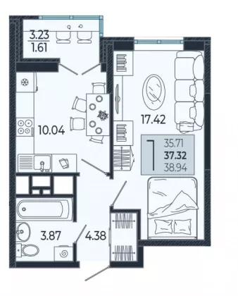 Продается однокомнатная новостройка, 38.94 кв.м., 15/21 эт