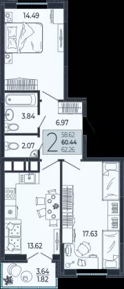 | Площадь, кв.м. | 62 |