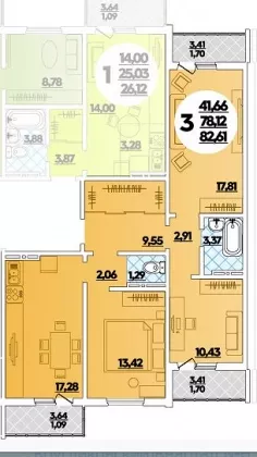 Продается 3-х комн. новостройка, 82.61 кв.м., 15/16 эт