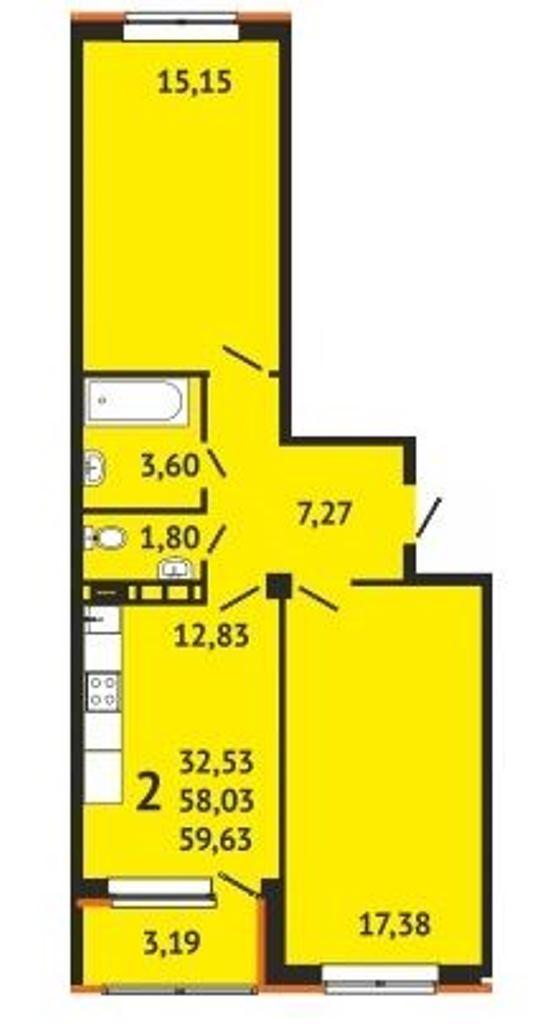 Продается 2-х комн. новостройка, 59.5 кв.м., 5/5 эт