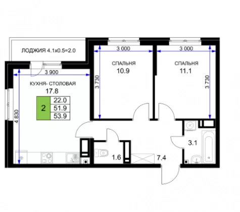 Продается 2-х комн. новостройка, 55 кв.м., 6/16 эт