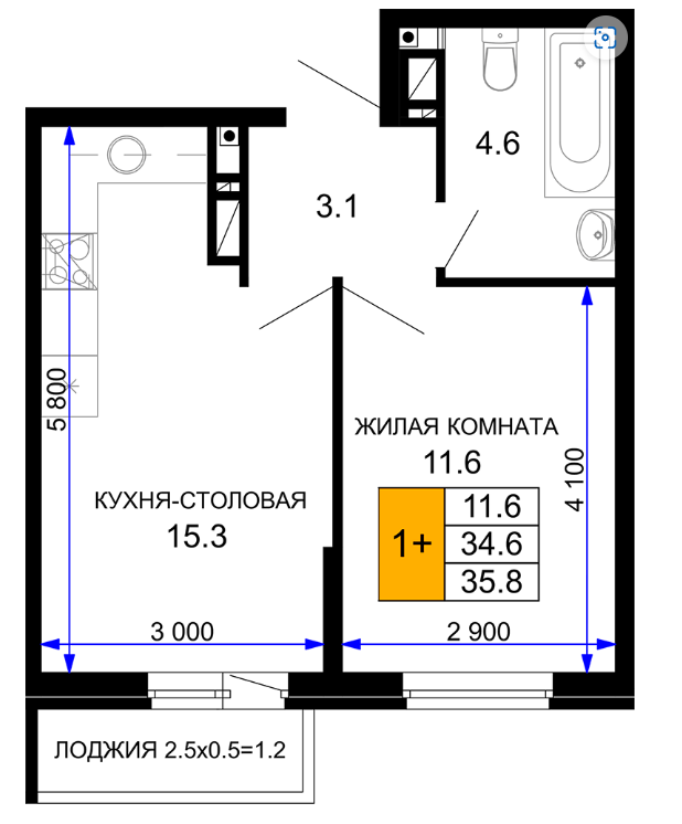 | Площадь, кв.м. | 35.8 |