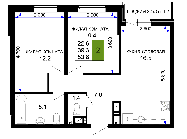 Продается 2-х комн. новостройка, 53.8 кв.м., 7/16 эт