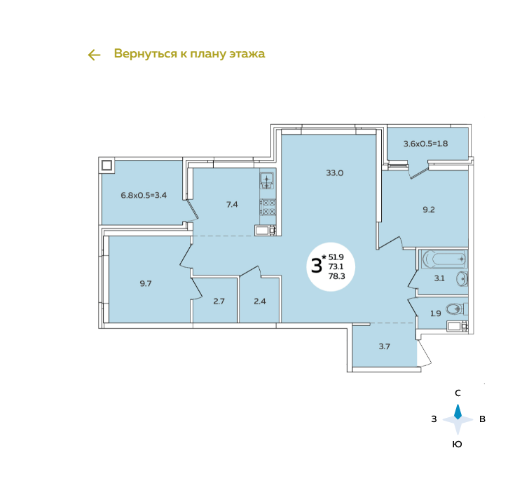 Продается 3-х комн. новостройка, 73 кв.м., 10/17 эт