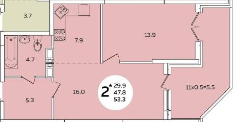 Продается 2-х комн. новостройка, 53.3 кв.м., 9/24 эт