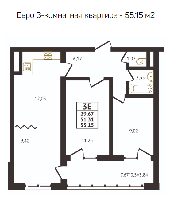Продается 3-х комн. новостройка, 57 кв.м., 9/17 эт