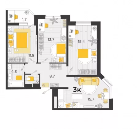 | Комнат в квартире | 3 |