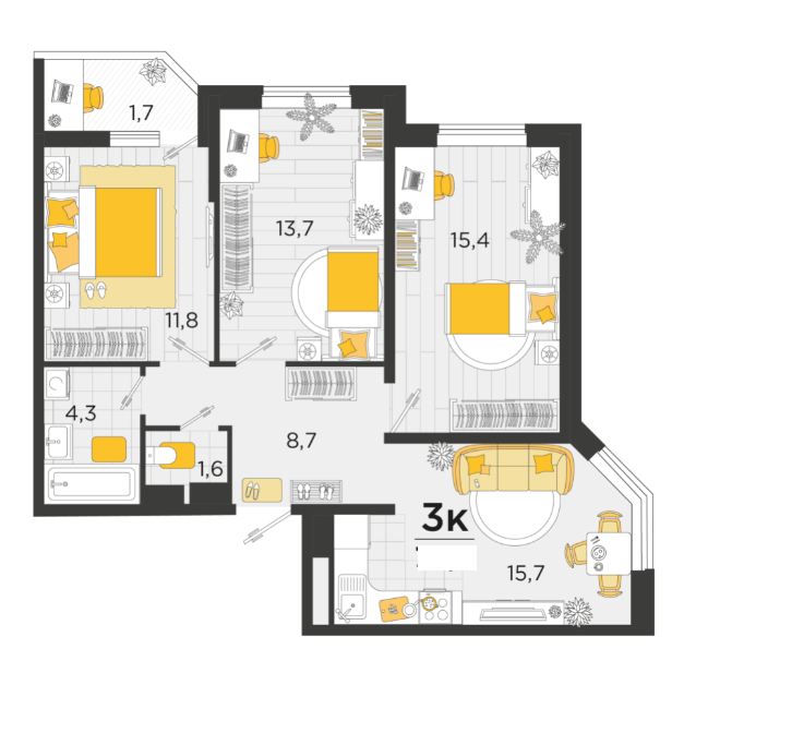 | Комнат в квартире | 3 |