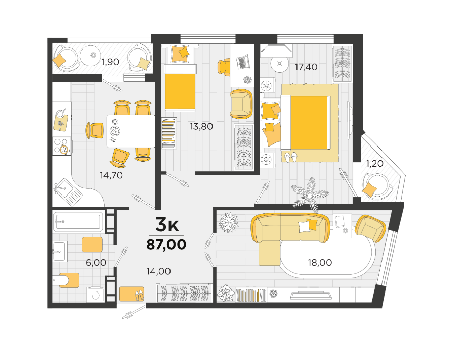 Трехкомнатная квартира в комплексе премиум класса! Просторные комнаты, кухня-гостиная с потрясающим видом на город и реку Кубань.