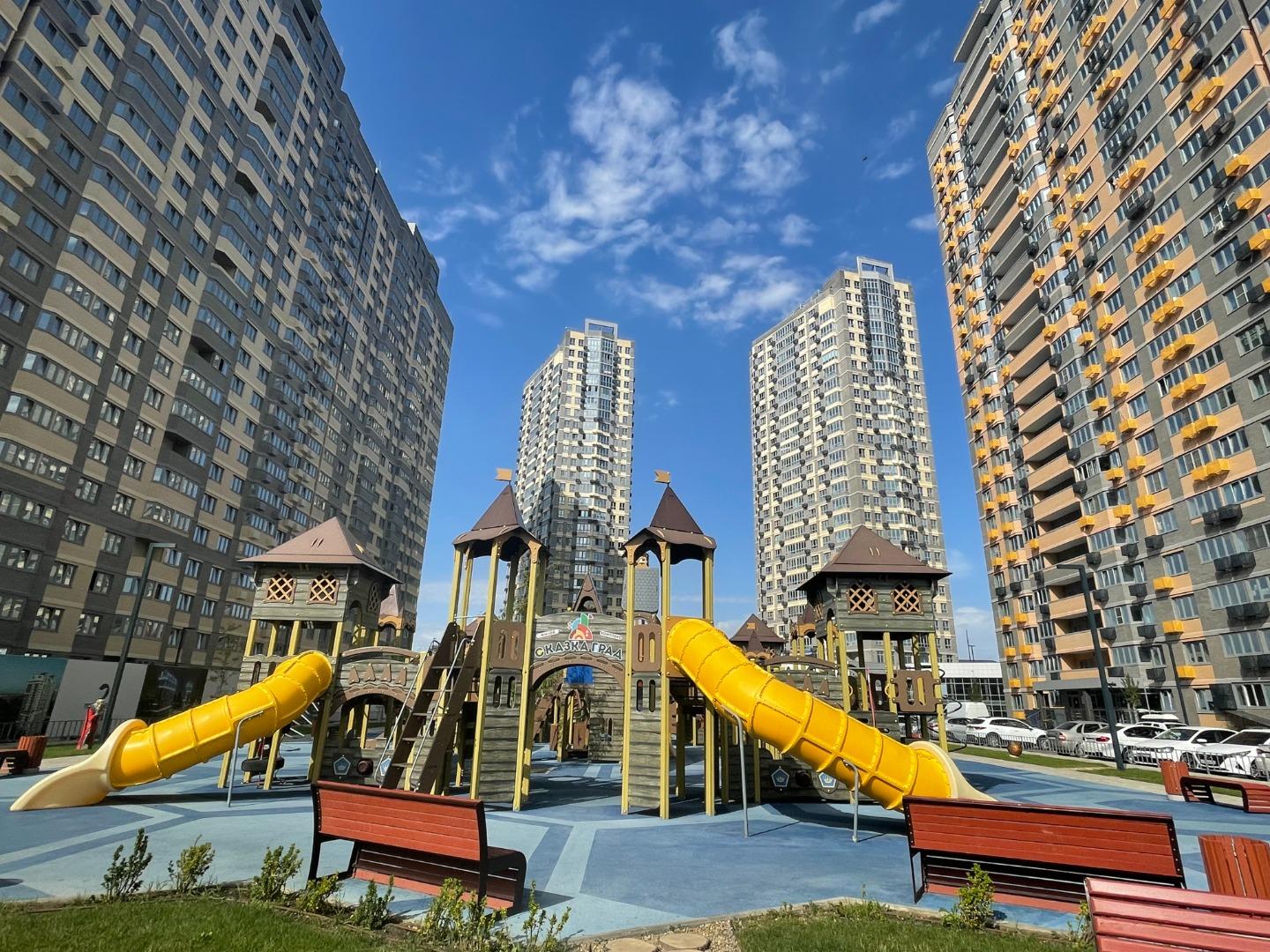 Рядом с домом детские сады и школа, остановка общественного транспорта, фитнес- клуб, парк «Солнечный остров», КУБГУ, удобный выезд к черному морю.