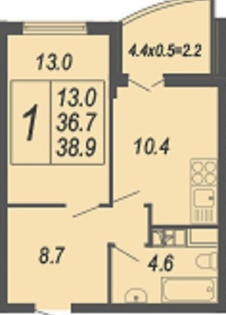 Продается однокомнатная новостройка, 38.9 кв.м., 16/19 эт